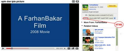 2. Cari Vidio yang ingin anda tampilkan di postingan anda melalui kotak "search" di youtube, di dalam postingan ini sebagai contoh, kita menggunakan keyword "Ipin dan Upin". Setelah semua vidio yang kita cari tadi tampil semua, maka kita pilih salah satu. Selanjutnya di manakah letak Kode HTML vidio tersebut? Perhatikan gambar di bawah ini: